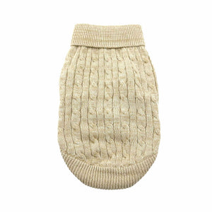 These pullover turtleneck dog sweaters have a classic cable-knit pattern accented with a ribbed collar, hem, and sleeves.