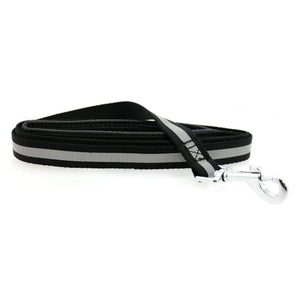 This nylon leash is 3/4-inches wide by 5-foot long. A soft-grip handle provides comfort for you and the reflective center strip helps make you and your furry friend more visible on night walks.
