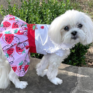 Treat your little sweetie to an adorably cute Strawberry Picnic dress with matching leash.