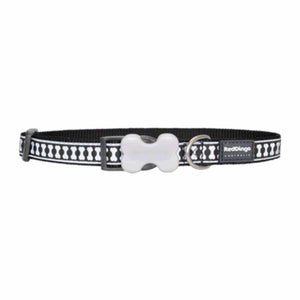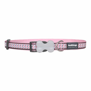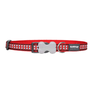Red Dingo reflective small dog collars are made with premium, flexible nylon that lasts a long time. A repeating bone pattern has a reflective pattern on it to help make your dog more visible when walking in the dark.