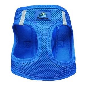 American River dog harnesses are made from tightly woven mesh polyester to help keep your pup cool on walks. The fabric is lightweight and flexible for added comfort. Zigzag stitching is used for durability. The harness is machine washable.