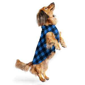 Keep your little pup warm on cool days and nights with a Gold Paw Series Stretch Fleece pullover dog shirt. The plaid collection includes red, blue and mulberry.